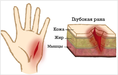 Первая помощь при порезах и ссадинах![]() Порез - это повреждение всех слоёв кожи насквозь острым предметом (стеклом, ножем). Ссадина – это поверхностное повреждение кожных покровов, обычно образующееся при падении и трении об асфальт или землю. Первая помощь при порезе состоит из двух задач: 1 - предотвращение попадания инфекций в кровь 2 - остановка кровотечения Мелкие порезы и ссадины - довольно частое явление, и люди часто не обращают на них особого внимания. Между тем, даже мелкий порез, если он неправильно обработан, может привести к серьезным последствиям. При мелком порезе или ссадине промойте рану под прохладной водой, обработайте рану перекисью водорода, антибактериальной мазью, йодом или зеленкой. При глубоком порезе обрабатывайте только края раны, иначе придется лечить пострадавшего еще и от ожога. Наложите антисептический пластырь или бинтовую повязку. ![]() Не прикладывайте к ране лист подорожника или другого растения — на нем чаще всего полным-полно бактерий, что чревато инфицированием раны. Если вы порезались о бетон, ржавый металл, либо в рану попала земля, песок, другая грязь — возможно, необходимо в течение 24 часов после ранения ввести вам противостолбнячную сыворотку, дать антибиотики, оказать другую помощь. Обратитесь к врачу! Также следует обратиться за медицинской помощью при порезе в области головы. Здесь последствия попадания инфекции - наиболее опасны. При глубоком порезе - важно быстро остановить кровотечение - наложить давящую повязку и (при артериальном кровотечении) жгут. Обязательно нужно обратиться к врачу. Далее: Занозы | |